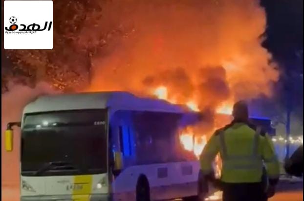حريق لحافلة لنقل جمهور برشلونة.